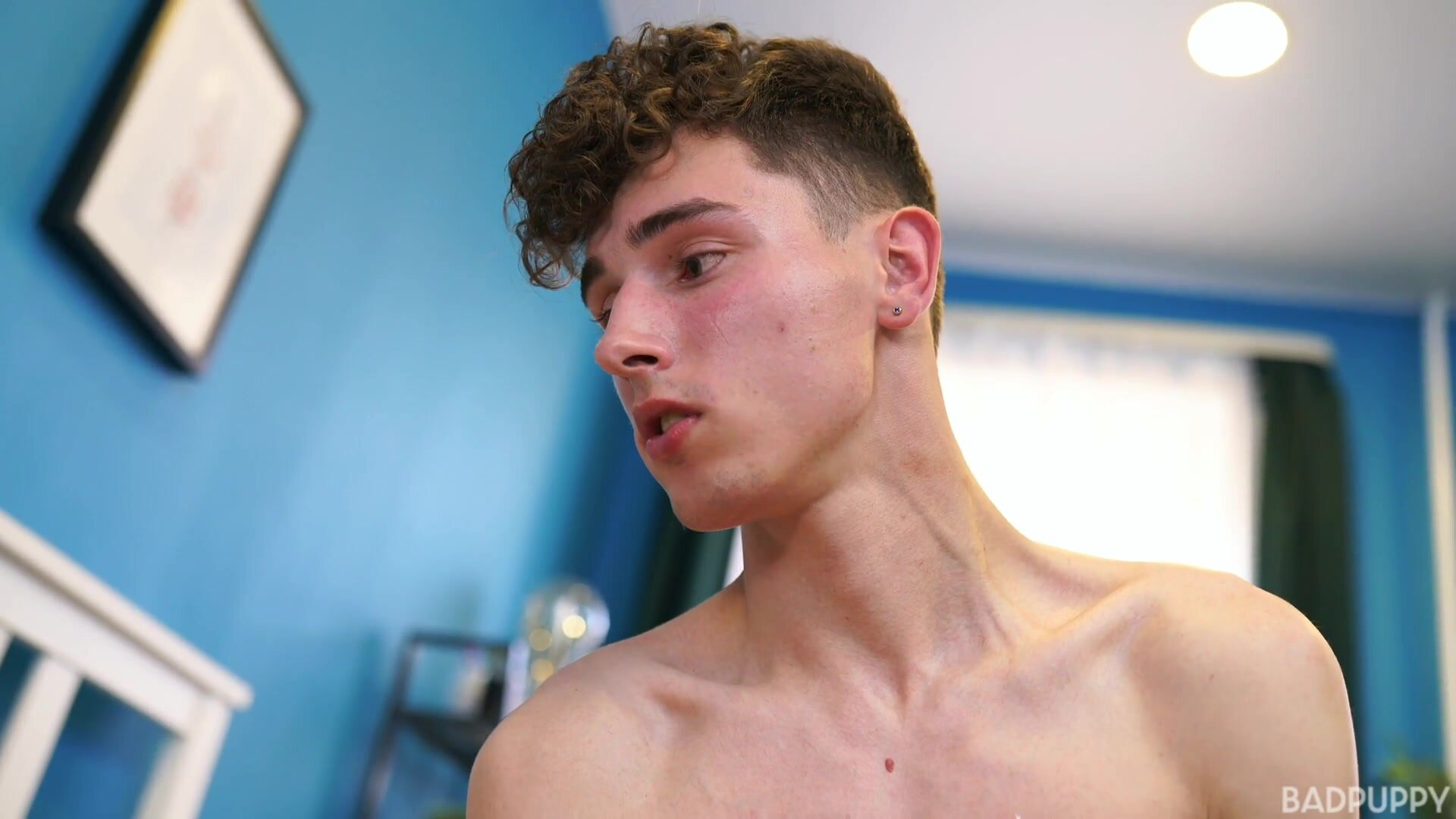 Junior Jameson helps Adam Shiner out of his shirt. Adam has a lean, tight build and he's looking for a little rub down. He lays down on the bed and Junior begins massaging his back and neck. Junior slips off Adam's underwear, grabs the bottle of massage oil and applies a bit to Adam's back. Junior takes his time, working his way slowly down to Adam's firm bubble-butt. Junior finds a plump surprise as he begins working on Adam's butt cheeks and legs. Adam's cock is rock-hard as if the massage was already turning him on. Junior's fingers begin teasing Adam's asshole and Adam begins gyrating his pelvis as he gets even more turned on. Junior reaches down and grabs ahold of Adam's cock with one hand and starts stroking it slowly. His other hand focuses on Adam's firm, tight ass; teasing his hole by slipping his fingers in and out. Adam rolls over on the bed and Junior continues jacking Adam's thick, uncut cock. Junior can't resist and leans over swallowing every inch of Adam's thick dick. He lays down beside Adam and the blowjob massage begins. Adam is really getting into the situation and starts face-fucking Junior. The hand job resumes and the moans of pleasure coming from Adam's mouth get louder. His body goes almost completely rigid and his balls all but disappear as Adam blows a thick load of creamy jizz all over his abs. Completely satisfied he lays back on the pillow, looks over at Junior and gives him a big smile.