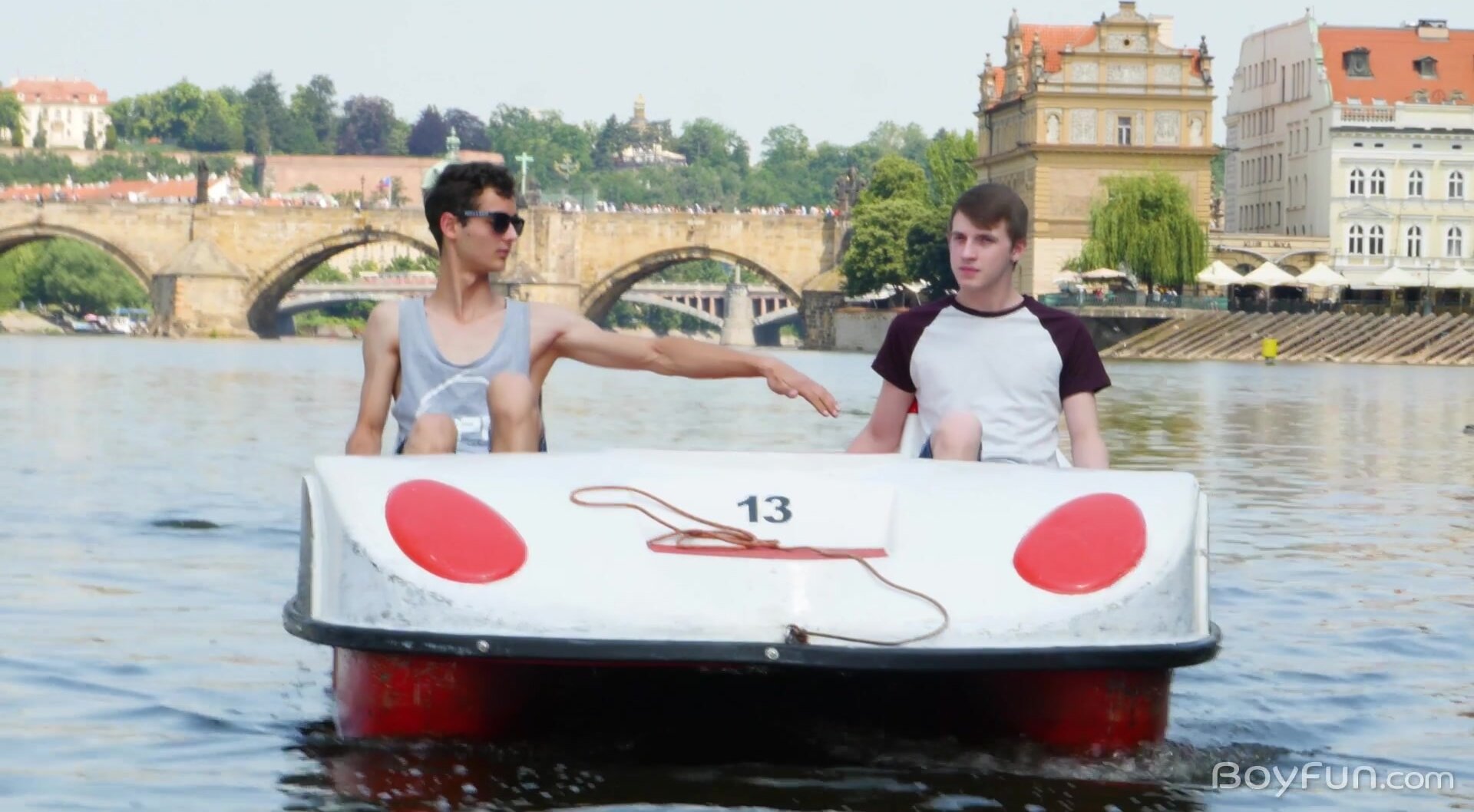 I think it might be time to start some kind of tourism agency for gorgeous boys like British twink Taylor Mason, there's probably a few thousand young men like him who would love to be shown around Prague by a boy like Alan Caine. We join them at the river where the two handsome young guys meet for the first time, but you know that after a little get-to-know-you chatting and a ride out on the lake the two are eager to continue their newfound friendship with some deliciously hot BoyFun. It seems young Taylor knows a thing or two about the tanned young twink, he's not at all surprised by the length of hard cock presented to him when he reveals the youthful boner from Alan's pants. He's a skilled sucked, slurping on the wet tip and playing with Alan's balls while he bobs on the warm tool in his mouth. It's a delicious sight, but we all know Alan is just as talented. Laying his friend on the bed he sets his eyes on the prize, quickly getting access to the perfectly pink and hooded length Taylor has for him. The British boy's cock is soon glistening with a mix of precum and spit, but the oral delights aren't over yet. With his long cock bouncing and throbbing Alan gets his new guest on his knees, his pale little butt up in the air, his cheeks soon parted for the boy to slip a tongue in. All that licking and lapping at Taylor's tight little pucker soon has him desperate for dick, something Alan can deliver with eager thrusts as he eases his bareback boner deep inside. Being fucked from behind soon has Taylor moaning for more, leading to a ride on his new pal's length as he straddles the boy and impales his rump on the healthy length of boner. It's enough to have any bottom ready to cum, but it's when Taylor takes it on his back with his prostate being rubbed repeatedly that he finally can't stop his hooded dick from spilling seed. As moans of youthful enjoyment escape their lips Taylor's cock spits teen cream, splashing semen up his smooth and tight body. The convulsing of the boy's hole around his engorged length quickly encourages Alan to do the same, pulling out and heading up to the handsome young man's face, showering him with ropes of cum and giving him a taste of his juices. We wonder who the next visitor will be?