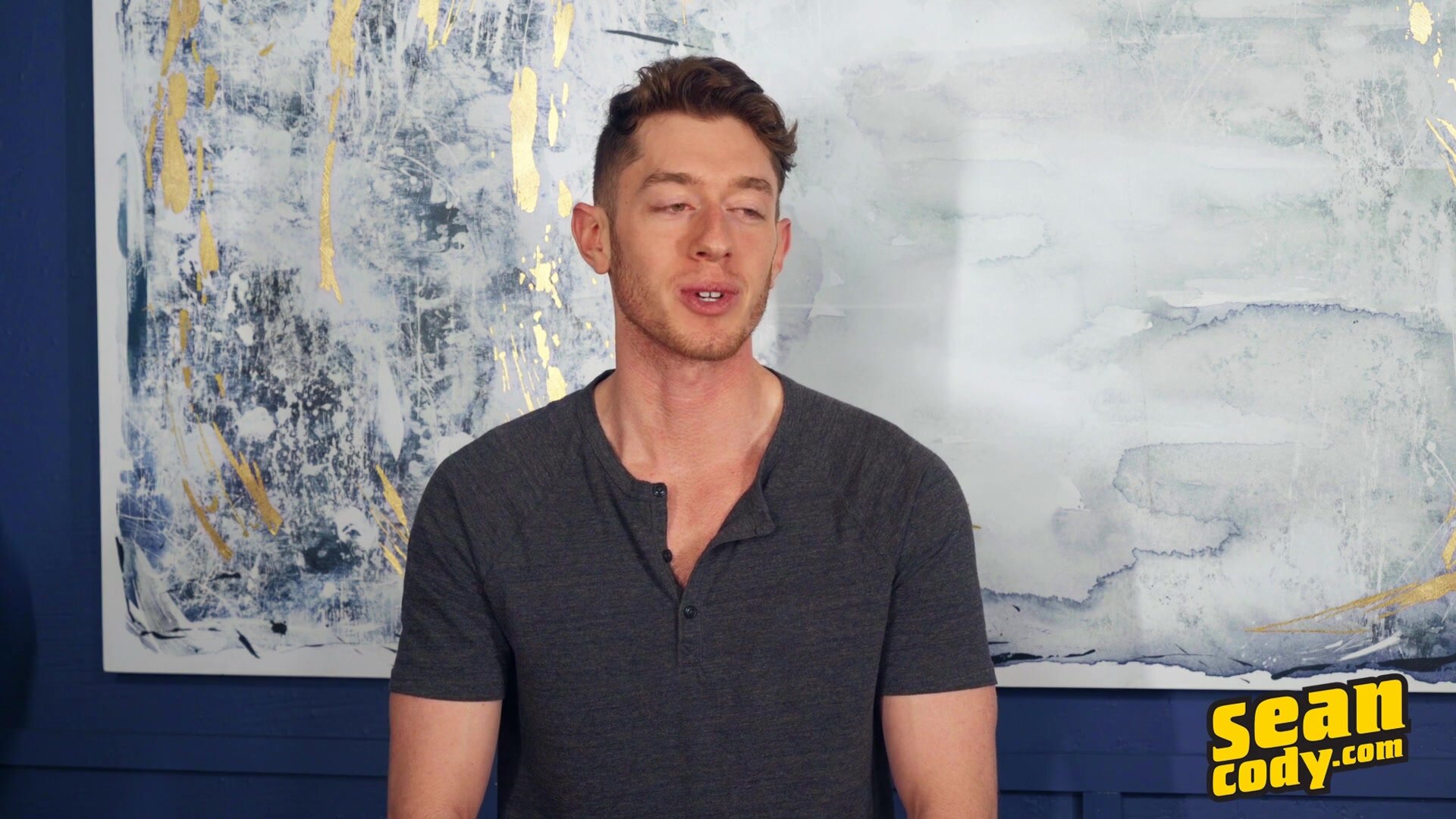 Sean Cody newbie Jake has been playing with control from both sides since coming out, and he's been dreaming about one particular guy: Brysen. "Seeing him fuck as aggressively as he fucks just makes me want him. So bad," says Jake. "If he wants to grab it and just go as hard as he can, that"s all I am asking for." Brysen is happy to go along with that plan! After Jake gets things started with a quick solo, he joins Brysen in the bedroom where the guys get naked and get each other incredibly horny. Jake swallows Brysen's big cock and is eager to ride that thick cock as the top chokes him and slaps his creamy ass. Jake takes everything Brysen dishes out, begging for his load and then offering up his hole for more, before both guys paint each other with cum. "Damn. That's a nice ass," Brysen compliments. "That's a nice dick!" Jake replies.