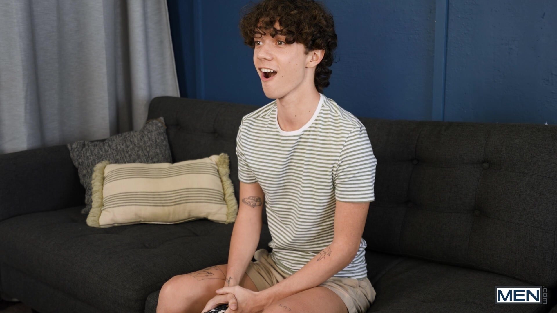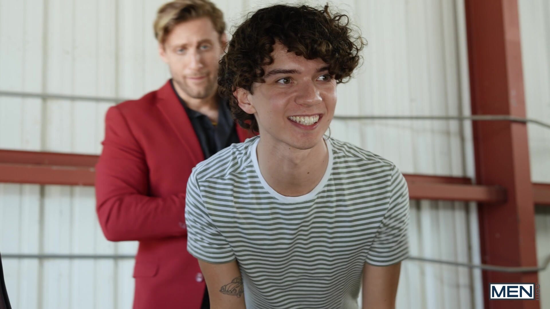 As soon as Sam Ledger sees the TV ad for the Good Rubber car dealership, starring hot salesman Dom King, he pulls out his life savings and goes to find himself a ride. Dom knows there's a sucker born every minute, and he plans to make Sam the newest... one way or another. As Sam bends over to check out the trunk space, Dom yanks down his pants and fucks him from behind, then they head outside where Sam sucks the top. Dom picks up the twink for a reverse stand and carry, then fucks him doggystyle bent over a hood. Dom hammers Sam missionary in the back of an SUV till the bottom cums, then gives him a facial before they go hammer out the deal in his office!