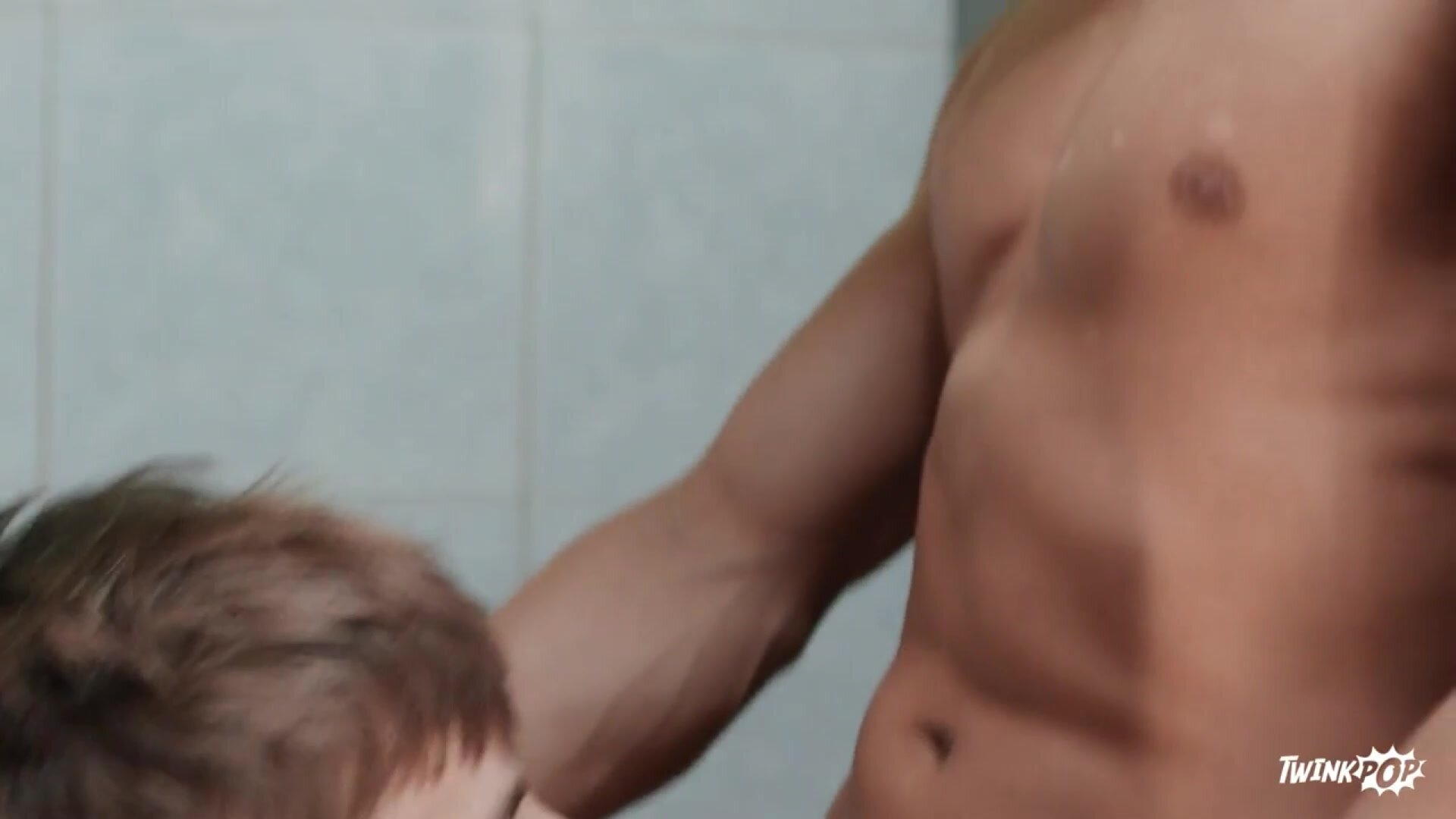 Twink Cyrus Stark gets pushed against his locker by college bully Angel Santana until he hides in the bathroom. As he's eating his lunch in the stall, he hears someone come in and start jacking off in the next stall. Not knowing who it is, when Angel Santana slides his legs under the divider Cyrus eagerly sucks him, then sits on that dick. Cyrus slides his ass into the next stall to get fucked doggystyle, then flips over and strokes his cock while the top drills him. The twinks can't believe who they've been fucking when Cyrus comes to Angel's stall, and the top face-fucks him, then pounds him against the wall before giving him a facial.
