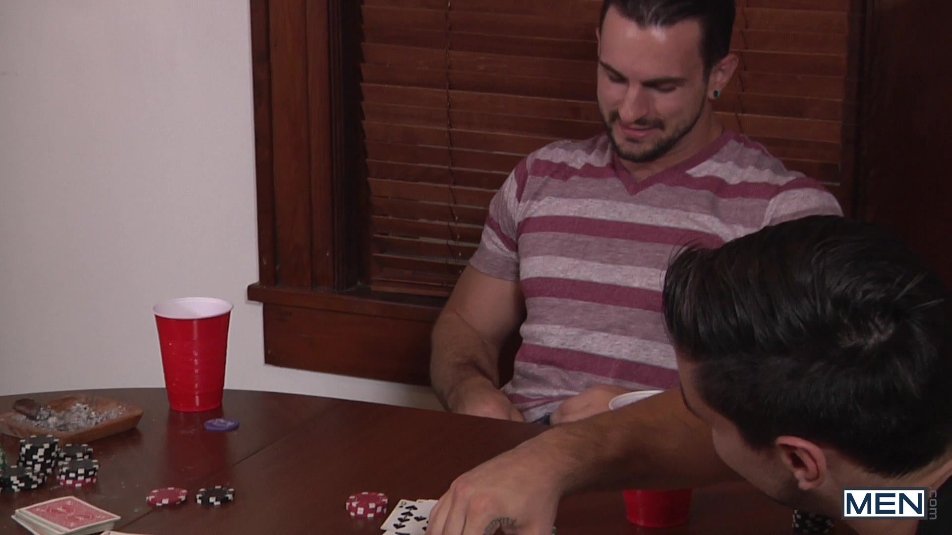 The guys are playing poker when the boy next door Tino Cortez walks his sweet ass inside the house searching for his neighbor's big dick.