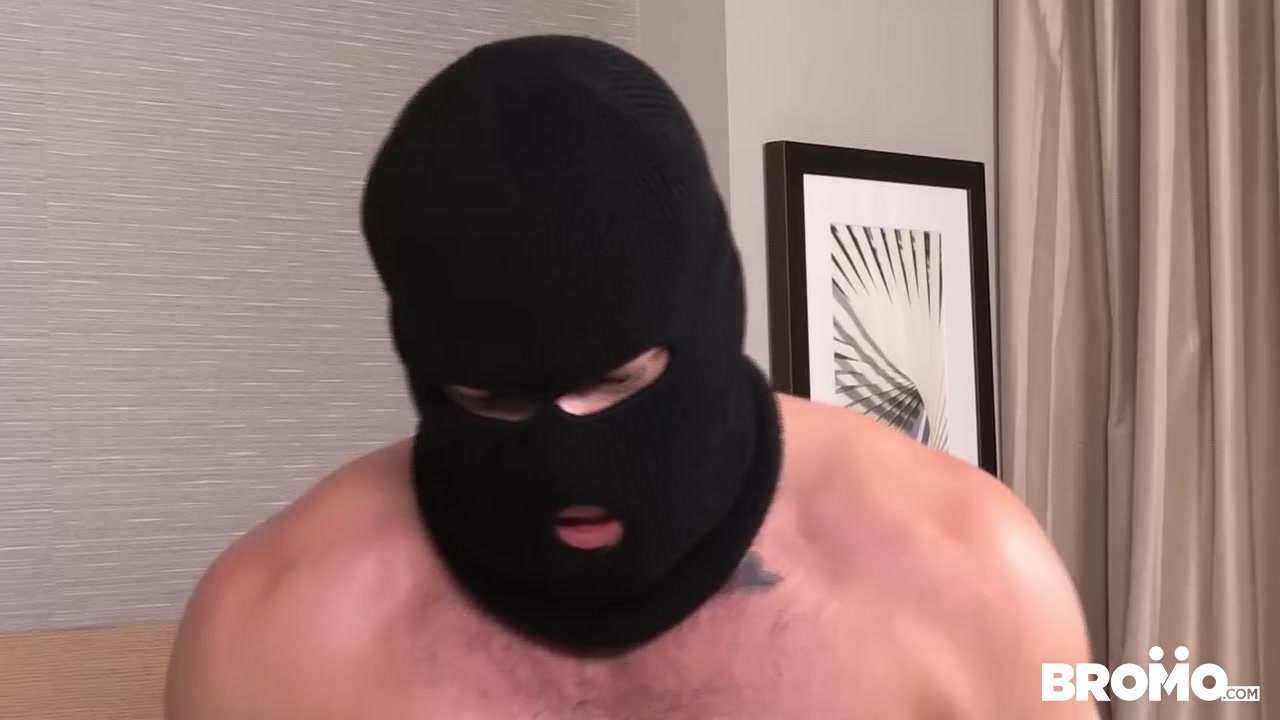 Buck Richards is buck-naked and handcuffed on the bed when Aspen walks in donning a mask. He quickly undresses and proceeds to spank Buck’s big ass a few times before sliding in raw and pounding him hard. The rest is a fast-paced fuck-a-thon that these two studs give us, until Aspen blows his hot load all over Buck’s hungry hole.