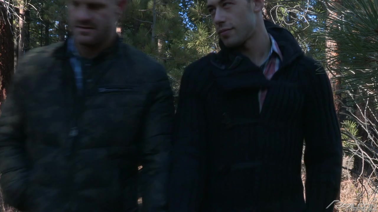 Sometimes a guy makes your dick so hard, you can't wait to get naked, even if you're not in completely private surroundings. That's how it is for Landon Conrad and Brandon Jones, who only make it halfway down the stairs before the clothes come off. Brandon wraps his long legs around Landon's torso as if to draw him as close as possible and prevent escape. Not that Landon has anywhere he'd rather be. Panting and salivating, they inhale each other's cocks. Landon's shoulders are bulked with muscle and erect nipples project from his broad and hairy chest. Brandon is slim and smooth, with a tawny, tight hole that's a magnet for Landon's tongue. But it's cock that Brandon wants pistoning his hole, so he leaps on Landon's lap and bounces lustily. Landon palms Brandon's flat tummy and grinds into him until sweat rains down his flanks. When Landon's about to cum, Brandon detaches himself and sucks on Landon's balls, fingering himself and jacking himself until they both explode, spooge flying in all directions.