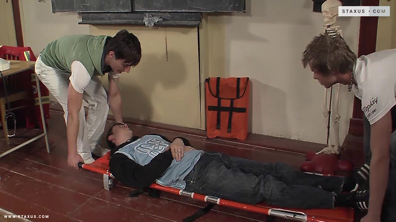 Frat Boy Fuckfest Scene 6 - John Hill, Julien Breeze, Dylan Freeman 2016 NeedGayPorn.com - Having some knowledge of first aid is definitely a very good thing – it can save someone’s life, after all. Nevertheless, Dylan Freeman and Julien Breeze decide to adopt a rather unusual method when trying to resuscitate John Hill; for having provided mouth-to-mouth and chest compressions, with no success, they reach into his boxers and pull out his dick! Unconventional it may be, but suffice it to say it has exactly the desired result – Hill immediately bounding back into consciousness and demanding that his rescuers show him their own cocks now that they’ve had a good look at his.