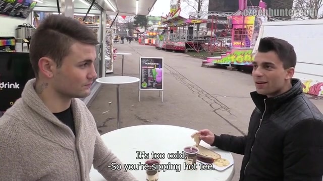 I got a call from a guy who I hunted long time ago. He mentioned having pretty serious financial problems. Not my problem, I told him. Then he promised to bring along his roommate. I was a bit reluctant but my curiosity won eventually. We met at St. Matthew’s Fair, which is a very famous event in Prague. I thought it would be fun but bad weather ruined everything. The boy changed quite a bit since the last time I saw him. He got much cuter and stylish. Also his roommate was really nice and sweet. It took some time to convince him and I had to offer him a lot of money. But the effort was well worth it. I booked us a luxuriously looking room and we enjoyed a nice threesome. Just the poor boy had to endure two cocks while loosing his virginity - Romi Zuska, Jeffrey Lloyd