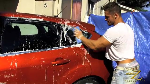A dirty car needs some muscle to get it clean and this is where Joey van Damme steps in. As he washes the car his wet shirt hugs his ripped body. Flexing with each stroke of the sponge, those tan muscles glisten in the hot sun. The suds run down his huge veiny biceps and tight abs. Joey poses his hot muscles before heading inside to give his cock some needed attention.