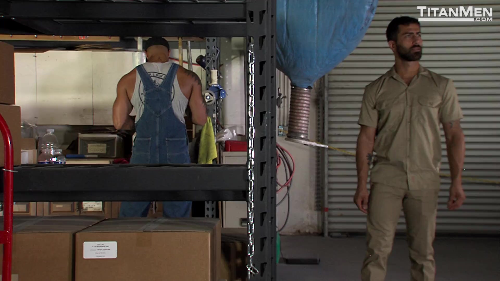 Description: Adam Ramzi has a package for warehouse stud Jason Vario, who tells the deliveryman that they make play gear. “Like for playgrounds?” asks Adam. “No,” laughs Jason, leading him to a sling. “Think a little more adult.” Jason deep throats Adam’s uncut cock, which bursts out of his uniform. Adam bends over for a kiss, beating the sucker’s pecs with his dick. Jason slides off his overalls to release his monster, Adam gasping for breath as he worships it. Jason whips it on the sucker’s face, Adam slapping Jason’s huge pecs. Adam sits on a rim seat, their cocks rock hard as Jason tongues the quivering stud’s hole. Adam sucks Jason as he gets eaten, then gets on all fours. Jason wraps his arm around the bottom, who grips it as he gets plowed (“It’s so fucking big!”). Adam straddles the sling as he gets it doggie style, then gets on his back—his cock bouncing as Jason thrusts inside him. Jason jacks Adam’s load out, then spurts on the bottom’s beard.