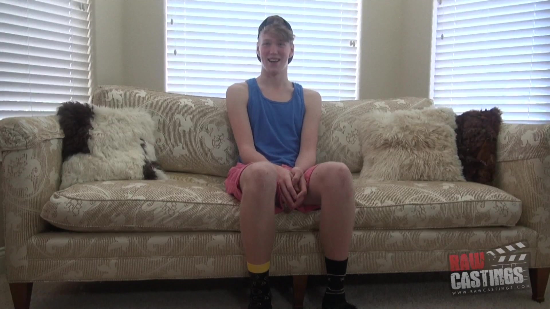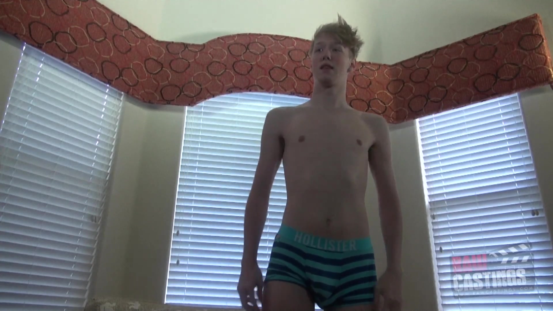 Caleb is the new guy on the casting couch in this episode, and the director begins by grilling Caleb on his sexuality, including his likes and dislikes. Caleb explains that he is gay, submissive, and loves getting controlled and fucked bareback. He loves being covered in cum, but he hates the thought of cum in his mouth. He has a nice body, which must come from all of the sports he did in high school, including being the swim team captain. It makes one wonder what all was happening in the showers at this boy's high school! As Caleb stands up to get some photos taken in various states of undress, he tells the casting director that he is 6 foot 3. This is a big guy, and the casting director is expecting big things! Caleb certainly has a big bootie - a nice fuckable ass. He also has no problem getting a boner. Once the photos are finished, the casting guy takes a seat on the couch in order to let Christian show off his blowjob skills. He isn't half bad at sucking dick, but it's when he has a raw cock up his ass that Caleb really shines. The director goes into him full throttle, too. Soon Caleb's butt is jiggling like a bowl of Jello as he gets pounded. He looks excellent in doggie style. The director fucks him good, and before long Caleb is the one on top, riding like a champ. Being a swimmer, his legs don't tire out too quickly, but after a few minutes the casting director flips him over to bareback him more in missionary. In every position Christian shows himself to be a competent bottom: young, sexy, and able to take a drilling. Once the director dumps a load on him, Caleb nuts, too. Another successful raw casting.