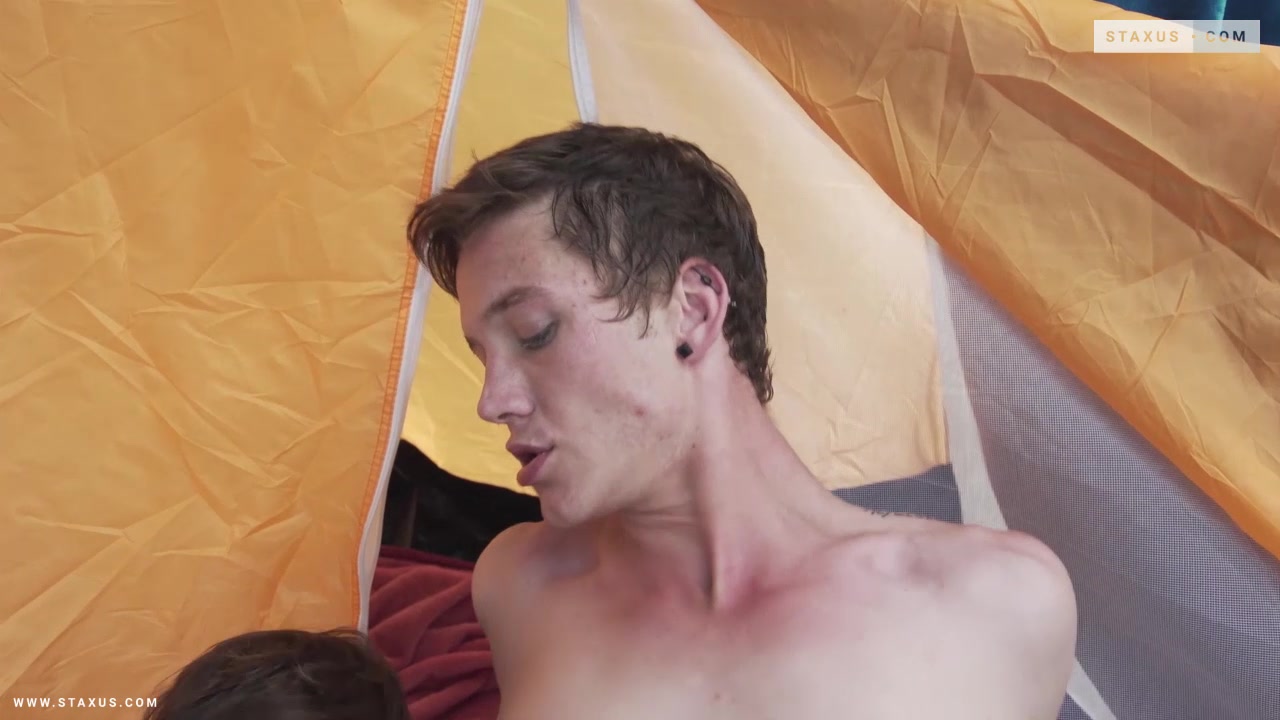 In terms of friendly welcomes, this surely has to be one of the best! For having made his way through the countryside on-foot, young Chester Owen is greeted at Rudy Stone’s tent with the kind of smooch that would tell anyone that their presence is appreciated almost without measure. Indeed, these horny lovers waste absolutely no time at all in getting down to the show-stopping side of the business. No time-wasting preambles for them, they’re down on the floor before you know it – with Stone’s shorts around his ankles and Owen furiously feasting on every hard inch that he’s discovered inside them! What’s more, Stone is just as intent on displaying his affection, soon replicating the attention on his mate’s thick, meaty ramrod; before gently fingering and rimming Owen’s hairless fuck-hole in anticipation of the open-air ass-banging that we all know is now but a few moments away.