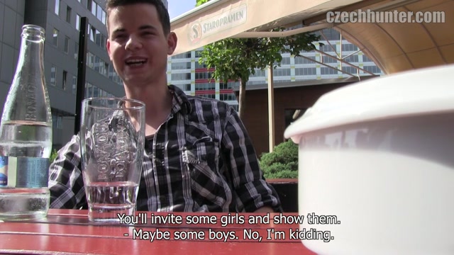 Jiri told me about his most recent success in a shopping mall. I decided to also try it there. The first guy I met looked muscular but a bit older. He was quite open. And a bit weird. He agreed to show me his dick for 1,000 crowns. He even started to jerk. But when I touched him he almost freaked out. Well, but I found another guy. Much more handsome for my taste. He definitely had a funny character. And somehow I had the feeling that he was bi-curious. Even so he denied to be so. I made a good offer to see his dick. He told me that it‘s much bigger when it‘s hard. Well, guess what: I offered him more to show me how it looks when it‘s hard. And so it all started in a bush close to the railroad tracks.