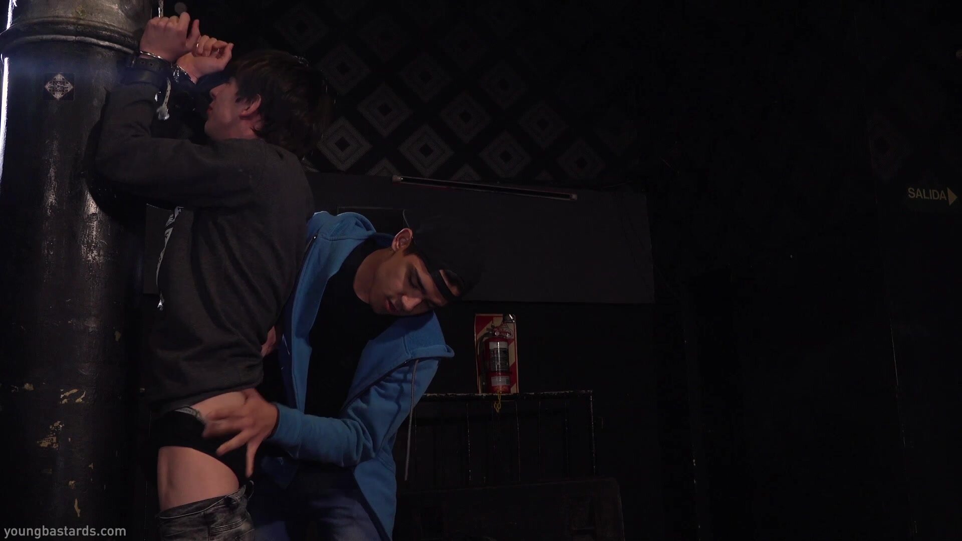 Description: (Models Felix Harris, Nico Butti). With his wrists cuffed innocent twink boy Nico has no option but to obey as he's chained up to the pillar. Felix knows what he wants, wasting no time tugging down those pants and getting to work with the leather paddle. He's a mean dominator, but although Nico cries out his big cock is rigid with pleasure while Felix slaps his cheeks and spanks his big dick against him. The boy is completely at the mercy of the hung twink master, made to suck that rigid meat and finally take every solid inch of that bareback prong up his hole. Felix just uses a little spit and he's cramming his cock into that tight little fuckhole, using his boy for his own pleasure. When he releases young Nico it's only to fuck the cum out of him on his back and make him ride his raw meat, finally showering his captive with his big spewing load.